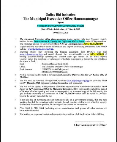 बोलपत्र आह्वान (मकै बिउ खरिद सम्बन्धि )
